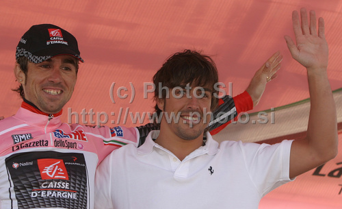 Plan de Corones / Kronplatz ,Italy - 25.05.2010 : In pink jersey as the best rider in overall classification David Arroyo Duran of Spain (Caisse D epargne) with Fernando Alonso (F1 driver) riding the indivudal time trial of the 16th stage of Giro dItalia from St. Vigil (San Vigilio di Marebbe) to Kronplatz (Plan de Corones). The individual time trial was 12,9 km long. The 16th stage of Giro dItalia 2010 from St. Vigil (San Vigilio di Marebbe) to Kronplatz (Plan de Corones) was held on Tuesday, 25th of May 2010 in Italy. Photo by: Mitja Smid Bricelj/PhotoSI
