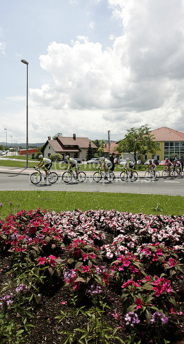 : Riders of ISD-Neri leading peloton during first stage of Tour de Slovenie 2010. First stage of 17th Tour de Slovenie 2010 in length of 173km was leading cyclists from Koper, Slovenia, to Medvode, Slovenia. First stage was held on Thursday, 17th of June 2010.