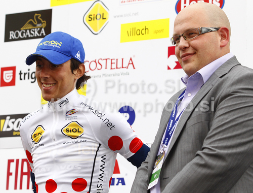 Ljubljana ,Slovenia - 18.06.2010 : Leader in mountain classification Stephane Rossetto of Vacansoleil Pro Cycling Team after second stage of Tour de Slovenie 2010. Second stage of 18th Tour de Slovenie 2010 in length of 166km was leading cyclists from Ljubljana, Slovenia, to Villach, Austria. First stage was held on Friday, 18th of June 2010. Photo by: Primoz Jeroncic