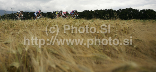 : Cyclists during third stage of Tour de Slovenie 2010. Third stage of 17th Tour de Slovenie 2010 in length of 171km was leading cyclists from Bled, Slovenia, to Krvavec, Slovenia. Third stage was held on Saturday, 19th of June 2010.