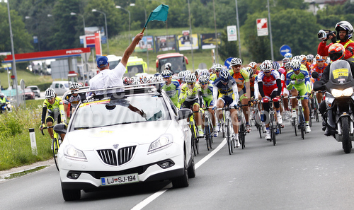 : Start of fourth and last stage of Tour de Slovenie 2010. Fourth stage of 17th Tour de Slovenie 2010 in length of 157km was leading cyclists from Brezice, Slovenia, to Novo Mesto, Slovenia. Fourth stage was held on Sunday, 20th of June 2010.
