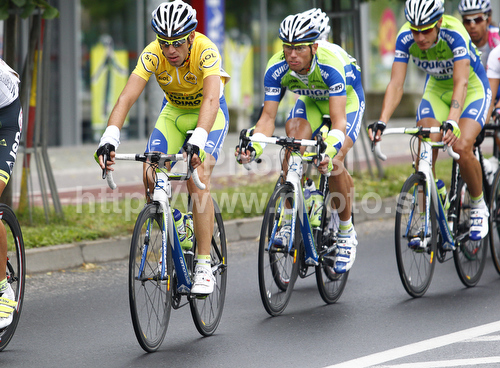 Novo Mesto ,Slovenia - 20.06.2010 : Overall winner Vincenzo Nibali of Liquigas-Doimo safely tucked behind his teammates riding through streets of Novo Mesto, Sloveniam during fourh and last stage of Tour de Slovenie 2010. Fourth stage of 17th Tour de Slovenie 2010 in length of 157km was leading cyclists from Brezice, Slovenia, to Novo Mesto, Slovenia. Fourth stage was held on Sunday, 20th of June 2010. Photo by: Primoz Jeroncic