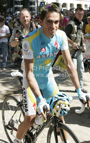 : Alberto Contador Velasco of Spain (Astana) at the start of the first stage of the 97th Tour de France from Rotterdam (Netherlands) to Bruxelles (Belgium). The stage was 223,5 km long. The first stage of 97th of Tour de France 2010 from Rotterdam to Bruxelles was held on Sunday, 4th of July 2010 in Netherlands and Belgium.