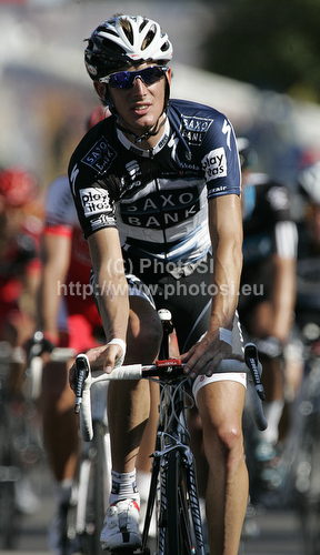 : Frank Schleck of Luxembourg (Team Saxo Bank) finishing the first stage of the 97th Tour de France from Rotterdam (Netherlands) to Bruxelles (Belgium). The stage was 223,5 km long. The first stage of 97th of Tour de France 2010 from Rotterdam to Bruxelles was held on Sunday, 4th of July 2010 in Netherlands and Belgium.