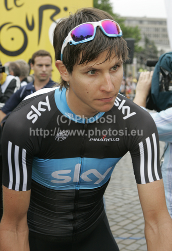 : Thomas Loevkvist of Sweden (Sky Professional Cycling Team) at the start of the second stage of the 97th Tour de France from Bruxelles to Spa (Belgium). The stage was 201 km long. The second stage of 97th of Tour de France 2010 from Bruxelles to Spa was held on Monday, 5th of July 2010 in Belgium.
