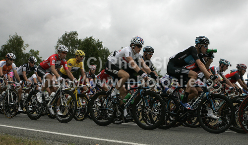 : Peloton during the second stage of the 97th Tour de France from Bruxelles to Spa (Belgium). The stage was 201 km long. The second stage of 97th of Tour de France 2010 from Bruxelles to Spa was held on Monday, 5th of July 2010 in Belgium.