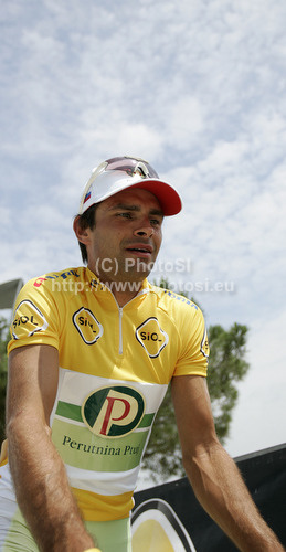 : Robert Vrecer of Slovenia (Team Perutnina Ptuj) before the start of the second stage of Tour de Slovenie 2011. The second stage from Koper to Nova Gorica was 189,6 km long and it was held on Friday, 17th of June, 2011 in Slovenia.