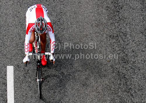 : Piotr Gawronski (POL) riding during first stage of Tour de Pologne. First stage in length of 101.5km was leading cyclists from Pruszkow, Poland, to Warsaw, Poland, and was held on 31st of July 2011.