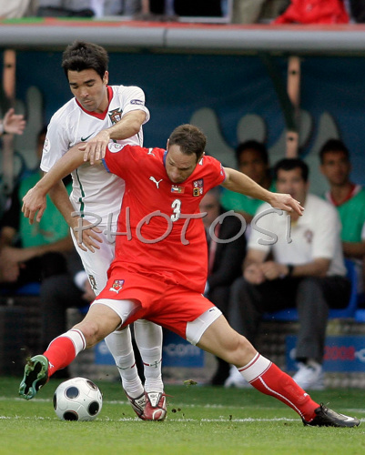 : Portugals midfielder Deco, left, fights for the ball with Czech Republics midfielder Jan Polak during the Euro 2008 Group A soccer match between Czech Republic and Portugal at the Stade de Geneve stadium in Geneva, Switzerland, Wednesday June 11, 2008.