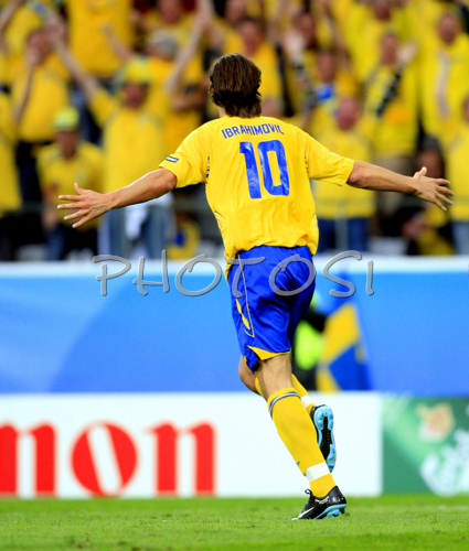 : Zlatan Ibrahimovic of Sweden celebrates his goal during the Euro 2008 Group D soccer match between Sweden and Spain at the Stadion Tivoli Neu in Innsbruck, Austria, Saturday June 14, 2008