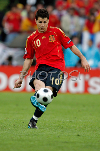 : Spains midfielder Cesc Fabregas kicks the ball during the Euro 2008 Group D soccer match between Sweden and Spain at the Tivoli Neu stadium in Innsbruck, Austria, Saturday June 14, 2008.