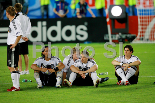 : Disappointed Germany team after the Euro 2008 final soccer match between Spain and Germany at the Ernst Happel stadium in Vienna, Austria, Sunday June 29, 2008.