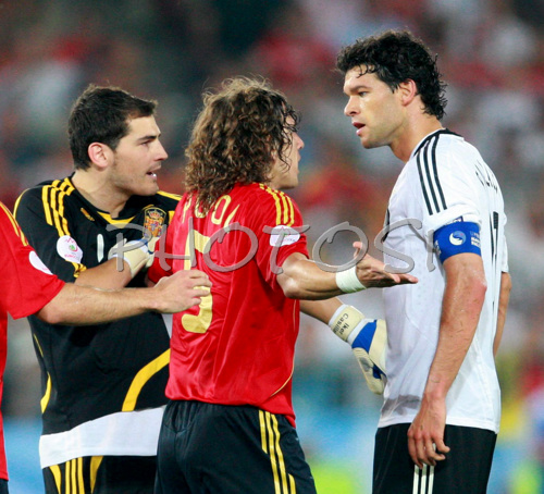 Wien ,Austria - 29.06.2008 : Spains Iker Casillas, Carles Puyol and Germanys Michael Ballack during the Euro 2008 final soccer match between Spain and Germany at the Ernst Happel stadium in Vienna, Austria, Sunday June 29, 2008. Photo by: Fabrizio Forte / DIPAG / PhotoSI