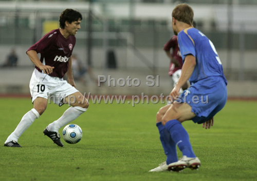 : Jari Litmanen (no.10) of FC Lahti (L) during football match of second qualifying round of UEFA Europa cup between NK Gorica, Nova Gorica, Slovenia and FC Lahti, Lahti, Finland. First match of second qualifying round of UEFA Europa cup between NK Gorica and FC Lahti was played in Nova Gorica, Slovenia, on 16th of July 2009.