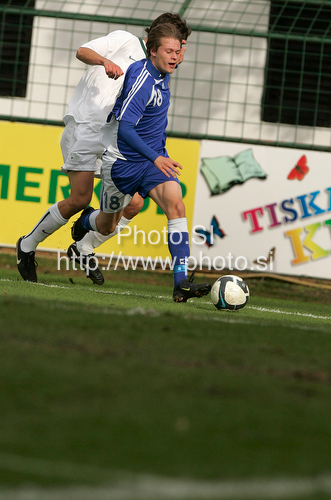 : Juho Lehtonen of Finland (R) and Matija Suligoj of Slovenia (L) during football match of U19 UEFA European Championships Qualification tournament between Slovenia and Finland. Match between Slovenia and Finland was played in Murska Sobota, Slovenia, on 14th of October 2009.