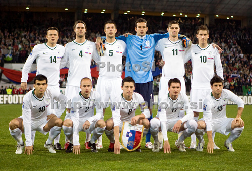 : Slovenia team before qualification match for FIFA World Cup 2010 in South Africa. Match between Slovenia and Russia was played on 18th of November 2009 in Maribor, Slovenia. Slovenia defeated Russia with 1:0 and qualified for FIFA World Cup 2010 in South Africa.