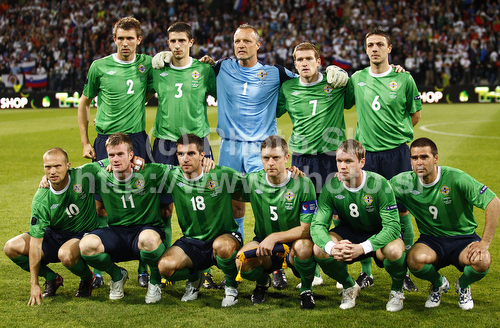 : Team of Northern Ireland before football match of first round of UEFA European championships qualifications between Slovenia and Northern Ireland. Match between Slovenia and Northern Ireland was played on Friday, 3rd of September 2010 in Ljudski Vrt arena in Maribor, Slovenia.