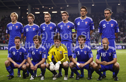 : Team of Faroe Islands before start of football match of UEFA European championships qualifications between Slovenia and Faroe Islands. Match between Slovenia and Faroe Islands was played on Friday, 8th of October 2010 in Stozice arena in Ljubljana, Slovenia.
