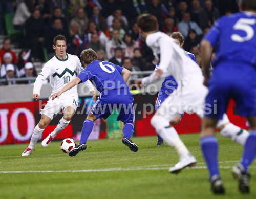 Ljubljana ,Slovenia - 08.10.2010 : Valter Birsa of Slovenia during football match of UEFA European championships qualifications between Slovenia and Faroe Islands. Match between Slovenia and Faroe Islands was played on Friday, 8th of October 2010 in Stozice arena in Ljubljana, Slovenia. Photo by: Primoz Jeroncic