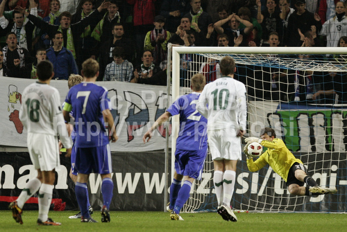 : Goalie Gunnar Nielsen of Faroe Islands during football match of UEFA European championships qualifications between Slovenia and Faroe Islands. Match between Slovenia and Faroe Islands was played on Friday, 8th of October 2010 in Stozice arena in Ljubljana, Slovenia.