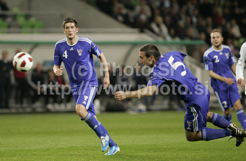 : Atli Gregersen of Faroe Islands, Egil a Bo of Faroe Islands during football match of UEFA European championships qualifications between Slovenia and Faroe Islands. Match between Slovenia and Faroe Islands was played on Friday, 8th of October 2010 in Stozice arena in Ljubljana, Slovenia.