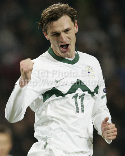 Ljubljana ,Slovenia - 08.10.2010 : Milivoje Novakovic of Slovenia during football match of UEFA European championships qualifications between Slovenia and Faroe Islands. Match between Slovenia and Faroe Islands was played on Friday, 8th of October 2010 in Stozice arena in Ljubljana, Slovenia. Photo by: Leena Jeroncic
