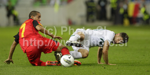 : Yassine El Ghanassy of Belgium (L) and Bojan Jokic of Slovenia (R) during friendly football match between Slovenia and Belgium. Match between Slovenia and Belgium was played on Wednesday, 10th of August 2011 in Stozice arena in Ljubljana, Slovenia.