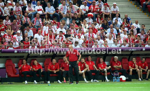: Coach of Polish team Franciszek Smuda during UEFA Football Euro 2012 match between Poland and Greece. Match of UEFA Football European Championships 2012 between Poland and Greece was played on Friday, 9th of June 2012 in Warszawa, Poland.