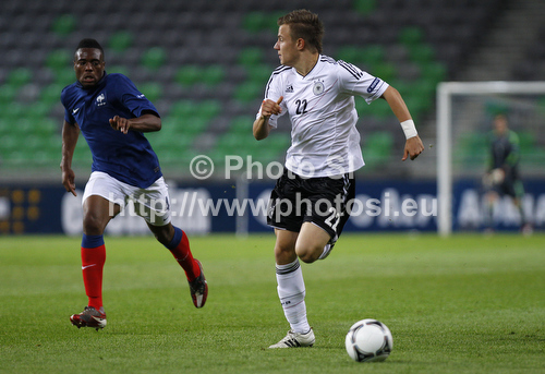 Ljubljana ,Slovenia - 10.05.2012 : Felix Lohkemper of Germany during football match between Germany and France of UEFA U17 European championships. UEFA U17 European championships football match between Germany and France, was played on Thursday, 10th of May 2012, in Stozice Stadium in Ljubljana, Slovenia. Photo by: Primoz Jeroncic