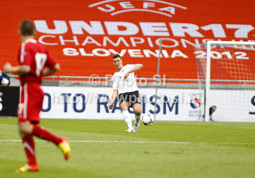 Ljubljana ,Slovenia - 13.05.2012 : Niklas Sule of Germany during football half final match of UEFA U17 European championships between Germany and Poland. Half final match of UEFA U17 European championships football between Germany and Poland, was played on Sunday, 13th of May 2012, in Stozice Stadium in Ljubljana, Slovenia. Photo by: Primoz Jeroncic