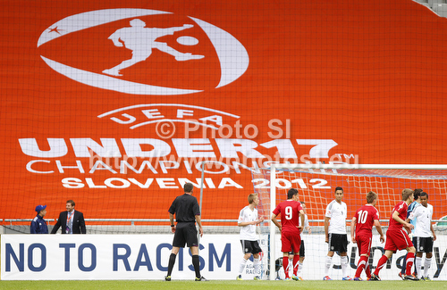 : Players of Poland and Germany during football half final match of UEFA U17 European championships between Germany and Poland. Half final match of UEFA U17 European championships football between Germany and Poland, was played on Sunday, 13th of May 2012, in Stozice Stadium in Ljubljana, Slovenia.