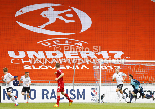 : Goalie Oliver Schnitzler of Germany in action during football half final match of UEFA U17 European championships between Germany and Poland. Half final match of UEFA U17 European championships football between Germany and Poland, was played on Sunday, 13th of May 2012, in Stozice Stadium in Ljubljana, Slovenia.