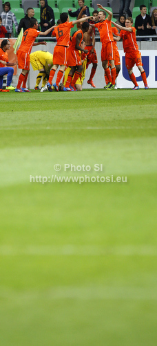 Ljubljana ,Slovenia - 16.05.2012 : Players of Netherlands celebrate their victory and European Championships title after football final match of UEFA U17 European championships between Germany and Netherlands. Final match of UEFA U17 European championships football between Germany and Netherlands, was played on Wednesday, 16th of May 2012, in Stozice Stadium in Ljubljana, Slovenia. Photo by: Primoz Jeroncic