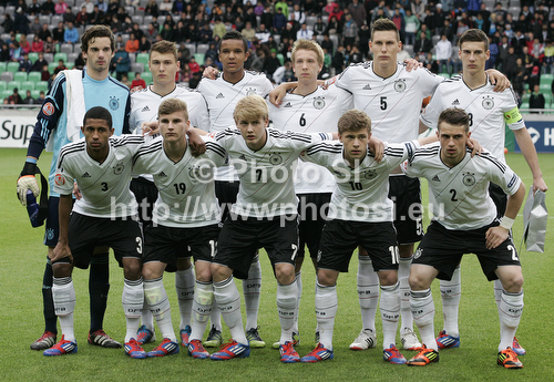 Ljubljana ,Slovenia - 16.05.2012 : German team before start of football final match of UEFA U17 European championships between Germany and Netherlands. Final match of UEFA U17 European championships football between Germany and Netherlands, was played on Wednesday, 16th of May 2012, in Stozice Stadium in Ljubljana, Slovenia. Photo by: Primoz Jeroncic