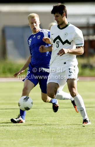 Ptuj ,Slovenia - 05.06.2012 : Lauri Dalla Valle of Finland and Nemanja Mitrovic of Slovenia during football match of UEFA U21 European championships 2013 qualifications between Slovenia and Finland. Qualifications match for UEFA U21 European championships 2013 between Slovenia and Finland, was played on Tuesday, 5th of June 2012, in Ptuj city Stadium in Ptuj, Slovenia. Photo by: Leena Jeroncic