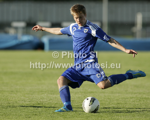 Ptuj ,Slovenia - 05.06.2012 : Jere Uronen of Finland shooting during football match of UEFA U21 European championships 2013 qualifications between Slovenia and Finland. Qualifications match for UEFA U21 European championships 2013 between Slovenia and Finland, was played on Tuesday, 5th of June 2012, in Ptuj city Stadium in Ptuj, Slovenia. Photo by: Leena Jeroncic