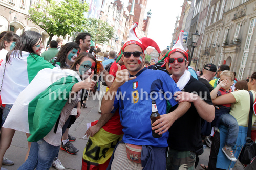 : Italian fans before start of UEFA Football Euro 2012 match between Italy and Spain. Match of UEFA Football European Championships 2012 between Italy and Spain was played on Sunday, 10th of June 2012 in Gdansk, Poland.