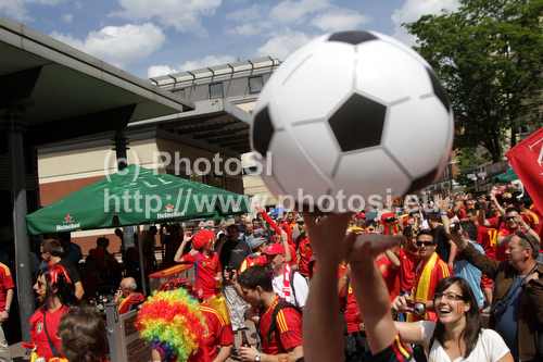 : Spanish fans before start of UEFA Football Euro 2012 match between Italy and Spain. Match of UEFA Football European Championships 2012 between Italy and Spain was played on Sunday, 10th of June 2012 in Gdansk, Poland.