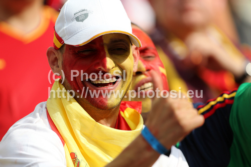 : Spanish fans before start of UEFA Football Euro 2012 match between Italy and Spain. Match of UEFA Football European Championships 2012 between Italy and Spain was played on Sunday, 10th of June 2012 in Gdansk, Poland.