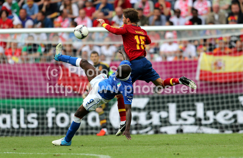 Gdansk ,Poland - 10.06.2012 : Sergio Ramos of Spain and Mario Balotelli of Italy during UEFA Football Euro 2012 match between Italy and Spain. Match of UEFA Football European Championships 2012 between Italy and Spain was played on Sunday, 10th of June 2012 in Gdansk, Poland. Photo by: Adam Jastrzebowski / PhotoSI