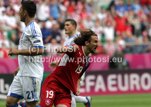 : Petr Jiracek of Czech celebrates goal during UEFA Football Euro 2012 match between Czech and Greece. Match of UEFA Football European Championships 2012 between Czech and Greece was played on Tuesday, 12th of June 2012 in Wroclaw, Poland.