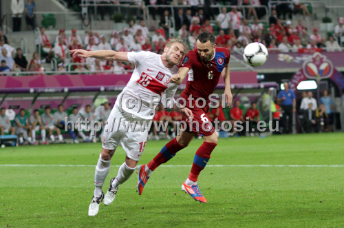 : Damien Perquis of Poland, Tomas Sivok of Czech republic during UEFA Football Euro 2012 match between. Poland and Czech republic Match of UEFA Football European Championships 2012 between Poland and Czech republic was played on Saturday, 16th of June 2012 in Wroclaw, Poland.