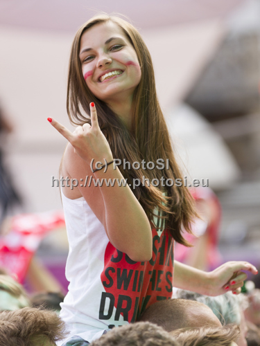 : Fan on concert of Ewy Farny and Ewa Farna during UEFA Football Euro 2012 match between. Poland and Czech republic Match of UEFA Football European Championships 2012 between Poland and Czech republic was played on Saturday, 16th of June 2012 in Wroclaw, Poland.