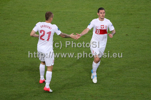 : Kamil Grosicki and Ludovic Obraniak of Poland during UEFA Football Euro 2012 match between. Poland and Czech republic Match of UEFA Football European Championships 2012 between Poland and Czech republic was played on Saturday, 16th of June 2012 in Wroclaw, Poland.