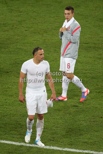 : Dariusz Dudka and Adam Matuszcky of Poland beeing sad after UEFA Football Euro 2012 match between Poland and Czech republic. Match of UEFA Football European Championships 2012 between Poland and Czech republic was played on Saturday, 16th of June 2012 in Wroclaw, Poland.