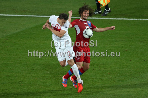 : Sebastian Boenisch of Poland, Petr Jiracek of Czech republic during UEFA Football Euro 2012 match between Poland and Czech republic. Match of UEFA Football European Championships 2012 between Poland and Czech republic was played on Saturday, 16th of June 2012 in Wroclaw, Poland.