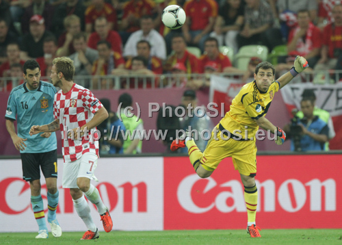: Iker Casillas of Spain during UEFA Football Euro 2012 match between Croatia and Spain. Match of UEFA Football European Championships 2012 betweenCroatia and Spain was played on Monday, 18th of June 2012 in Gdansk, Poland.