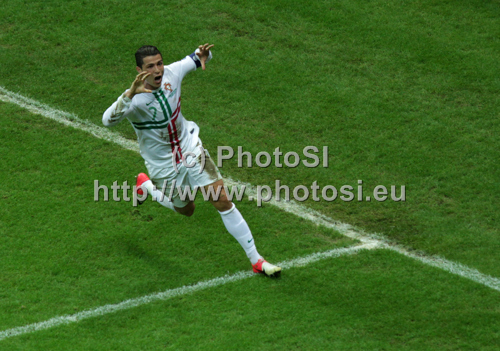 : Cristiano Ronaldo of Portugal celebrating goal during UEFA Football Euro 2012 quaterfinal match between Czech republic and Portugal. Match of UEFA Football European Championships 2012 between Czech republic and Portugal was played on Thursday, 22th of June 2012 in Gdansk, Poland.