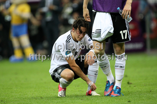 : Mesut Ozil of Germany, Per Mertesacker of Germany during UEFA Football Euro 2012 semi final match between Italy and Germany. Match of UEFA Football European Championships 2012 between Italy and Germany was played on Thursday, 28th of June 2012 in Warsaw, Poland.