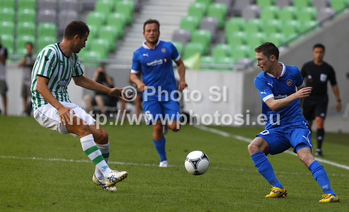 : Thomas Drage of Tromso IL (R) during football match of second qualifying round of UEFA Europa League between NK Olimpija, Slovenia and Tromso IL, Norway. Match of second qualifying round of UEFA Europa League between NK Olimpija and Tromso IL was played in Stozice arena in Ljubljana, Slovenia, on Thursday, 19th of July 2012.